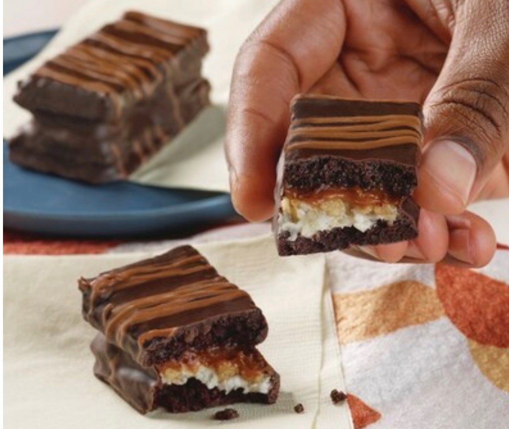 Available in two varieties – Chocolate Caramel and Triple Chocolate – Kazbars feature layers of soft chocolate cake, creme, candy crunch and a caramel or smooth chocolate fudge filling. Each bar is covered in a rich chocolate-flavored coating and topped with a sweet drizzle.