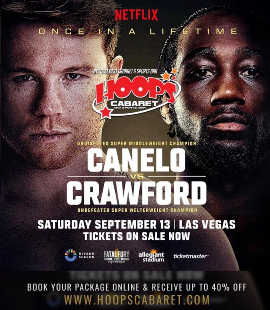 The highly anticipated boxing match between Canelo Alvarez and Terence Crawford is scheduled for September 13 at Allegiant Stadium in Las Vegas. New York fans can watch it at Hoops Cabaret and Sports Bar.