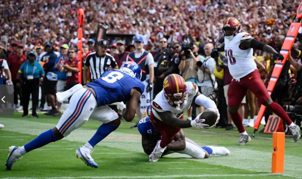 Commanders quarterback Jayden Daniels went 19-for-30 for 233 yards with a touchdown, and running back Jacory Croskey-Merritt had a strong debut with 10 carries for 82 yards and a touchdown. Deebo Samuel was the Commanders’ leading receiver with seven catches for 77 yards.